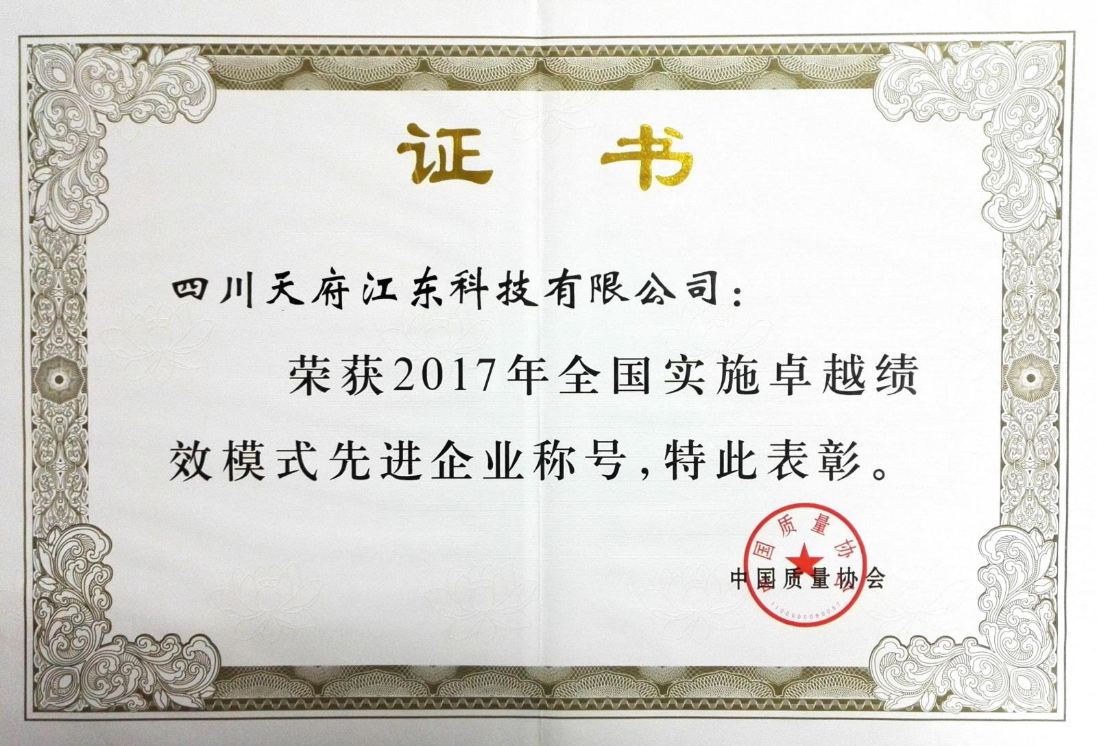 被評為實(shí)施全國卓越績效先進(jìn)企業(yè)